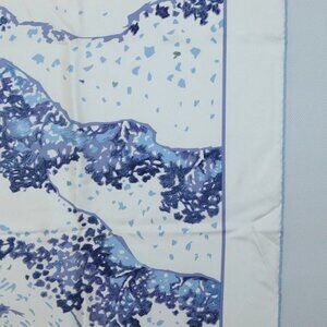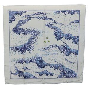 HERMES Carre 90 Scarf ""Trois Feuilles"" Silk White Light Blue Auth