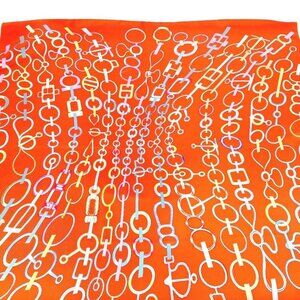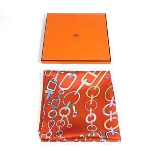 HERMES Carre90 Carre 90 DO RE BOUCLES Scarf silk Orange Unused
