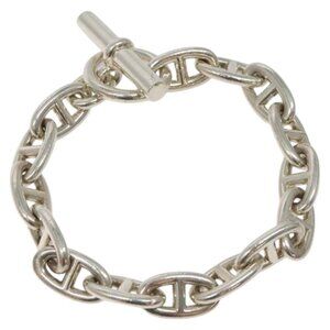 HERMES Chene Dunkle GM Bracelet Ag925 15 Links Silver Auth PP604M