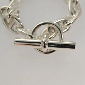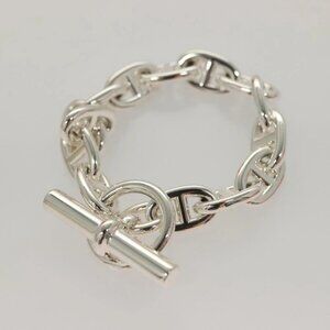 HERMES Chene Dunkle MM Bracelet Ag925 14 Links Silver Auth 132989M