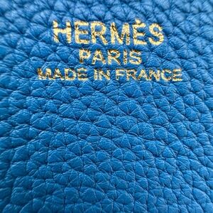 The Hermes Clemence Double Sens 45 Reversible Blue with Light Taupe Taurillon Leather Tote Bag is a stylish and versatile accessory for women. This genuine Hermes bag measures 14" base/16"5 top, 13" high and 5" deep with two 19"5 straps each side to side with a 8"2 drop. This medium-sized tote features a pebbled leather exterior in blue with a light taupe leather lining. The bag is reversible, offering a different color combination when turned inside out. Made in France with high-quality leather, this HERMÈS Double Sens model is perfect for everyday, work, travel or special occasions, showcasing the signature Clemence finish. There may be a few light scuffs on corners with no tears and this lovely tote was well cared for. The tote has a spacious interior and comfortable leather handles, making it both practical and fashionable. 100% genuine Hermes Double Sens and bag has been authenticated and comes with box.