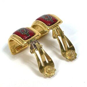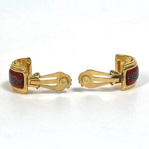 HERMES Cloisonne Email/Accessories Vintage/Earrings Gold Plated Red x Gold