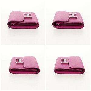 HERMES Constance Compact Wallet Leather Purple pink Auth 142362M