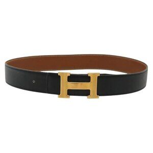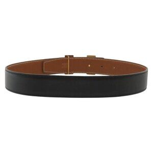 HERMES Constance H Belt Leather 31.1"" Black Auth ki5928