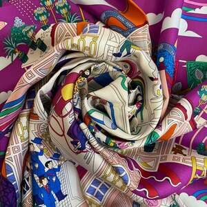 HERMES Cream Silk Scarf