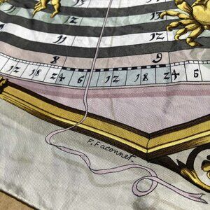 HERMES Dies Et Hore Square Silk Scarf Astrology Gray Multicolor Carre 90