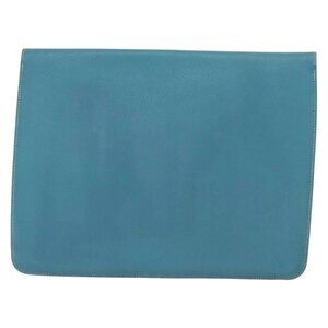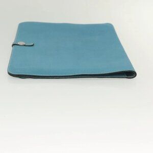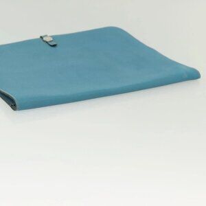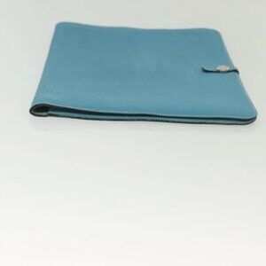 HERMES Dogon Meeting Clutch Bag Togo Light Blue Silver