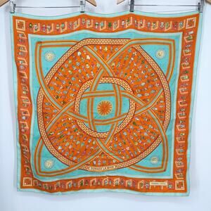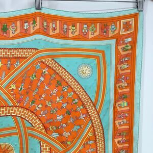 - A beautifully detailed collectible scarf on classic Hermes Orange, perfect tied around the neck or on a handbag <3