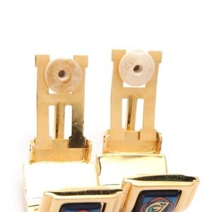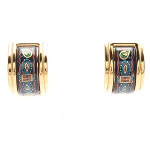 HERMES ENAMEL EARRINGS GP (GOLD PLATED) CLOISONNE GOLD BLUE EUC