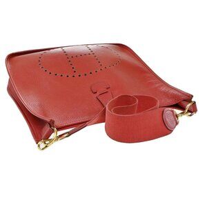 HERMES Evelyn GM Shoulder Bag Circle Z Taurillon Clemence Leather Red