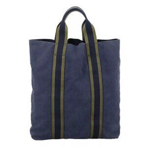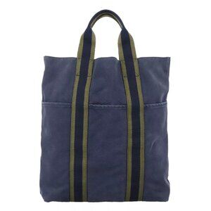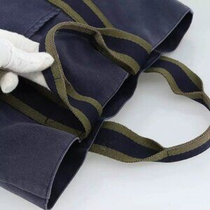 HERMES Fourre Tout Cabas Tote Bag Canvas Navy Khaki Auth ti2566