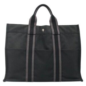 HERMES Fourre Tout MM Hand Bag Canvas Black Auth 129764