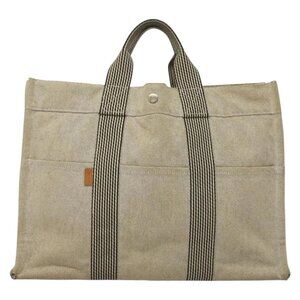 HERMES Fourre Tout MM Hand Bag Canvas Gray Silver Auth