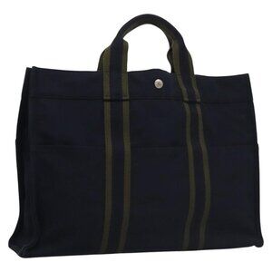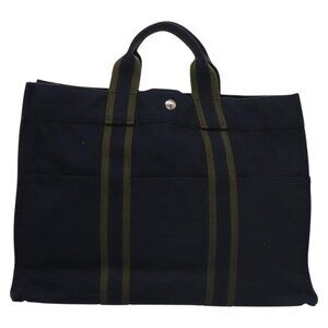 HERMES Fourre Tout MM Hand Bag Canvas Navy Auth ti2640