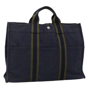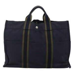 HERMES Fourre Tout MM Hand Bag Canvas Navy Auth ti2836