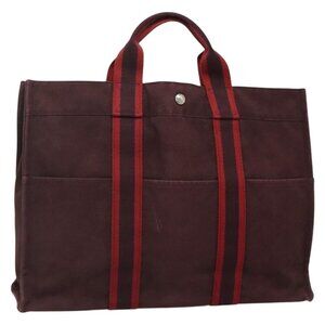 HERMES Fourre Tout MM Hand Bag Canvas Red Auth