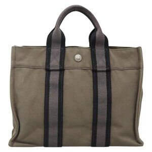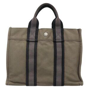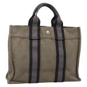 HERMES Fourre Tout PM Hand Bag Canvas Gray Navy Auth 136396