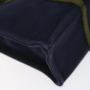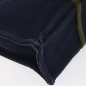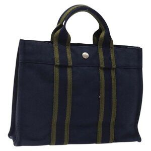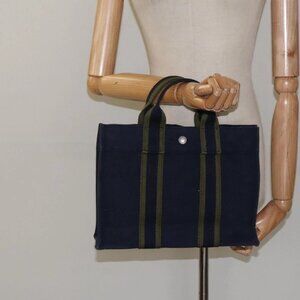 HERMES Fourre Tout PM Hand Bag Canvas Navy Green Silver Auth sw656