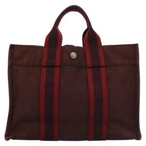 HERMES Fourre Tout PM Hand Bag Canvas Red Navy Auth ti2778