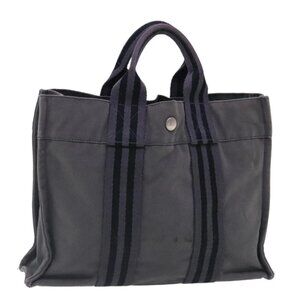 HERMES Fourre Tout PM Tote Bag Canvas Gray Silver Auth ti2154