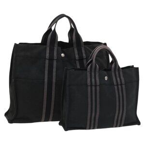 HERMES Fourre Tout Tote Bag Canvas 2Set Black