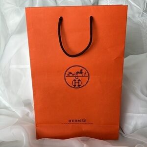 This authentic empty Hermes gift bag is perfect for gifting that luxury gift, use as display or storage. It measures 17” long x11” wide x 4” deep. Has brown cord handles