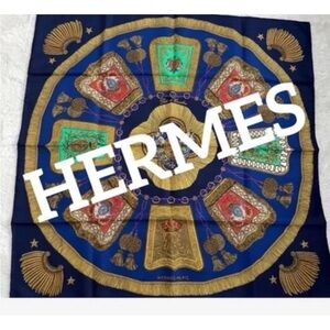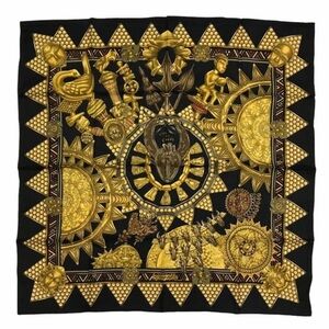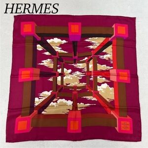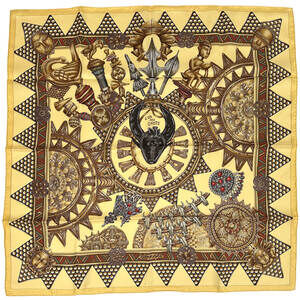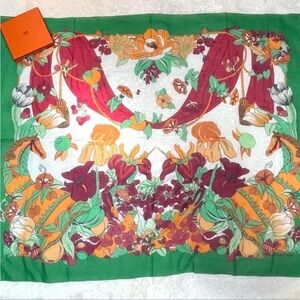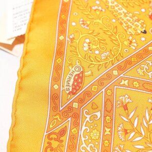 HERMES Gavroche 45 Scarf ""Peuple du Vent"" Silk Orange Auth sw1607
