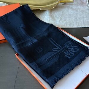 HERMES Gray Silk Scarf