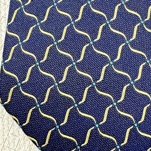 HERMES H Logo Navy Gold Plaid Check Classic Luxury 100% Silk Tie Made in France