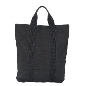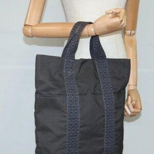 HERMES Her Line Cabas Tote Bag Nylon Gray Silver Auth bs19750