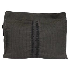 HERMES Her Line Clutch Bag Canvas Gray Auth 118940