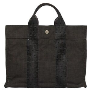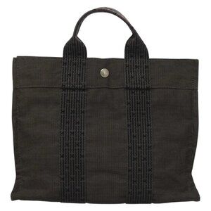 HERMES Her Line Hand Bag Canvas Gray Auth