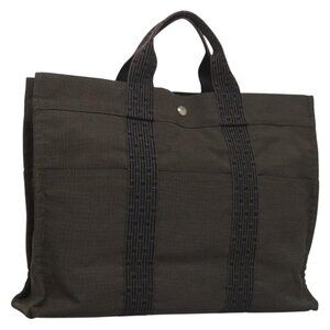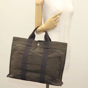 HERMES Her Line MM Hand Bag Canvas Gray Auth