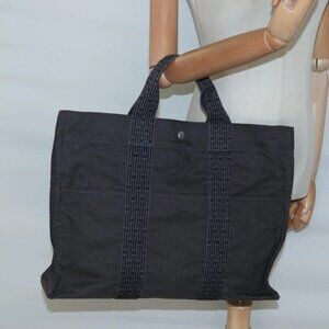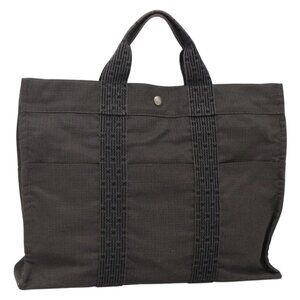 HERMES Her Line MM Hand Bag Canvas Gray Silver Auth 140106