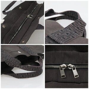 HERMES Her Line MM Hand Bag Canvas Gray Silver Auth 140108