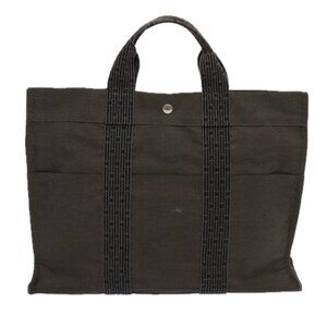 HERMES Her Line MM Tote Bag Canvas Gray Auth 69370