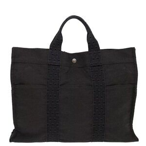 HERMES Her Line MM Tote Bag Canvas Gray Auth 70654
