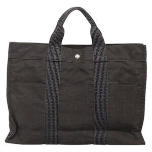 HERMES Her Line Tote Bag Canvas Gray Silver Auth 132562