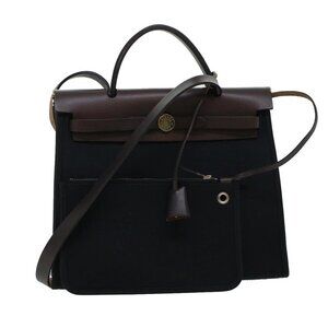 HERMES Herbag Zip PM Hand Bag Canvas 2way Black Auth am4398