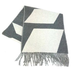 PRODUCT INTRODUCTION: Bicolor's jacquard scarf ``Cazak Optic'' is inspired by Hermès horse riding clothes and features a graphic motif. It has a simple gray and white design.