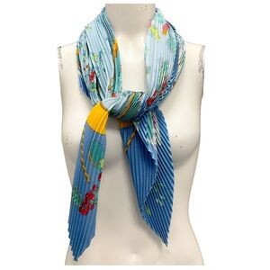 Hermes Light Blue Multi Neige d'Antan Plisse Pleated Silk Twill Scarf