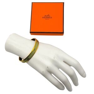 Hermes Light Green Narrow Printed Rope Enamel Bracelet