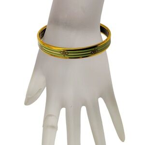 HERMES LIGHT GREEN NARROW PRINTED ROPE ENAMEL BRACELET