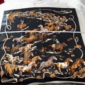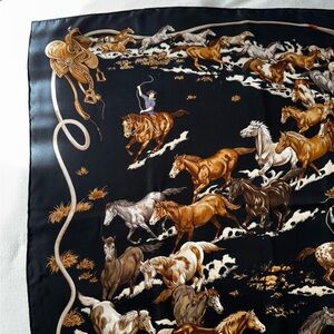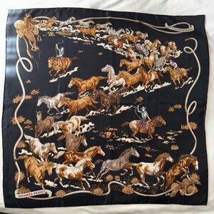 HERMES Le Mustangs Silk Scarf Vintage Equestrian Print STUNNING