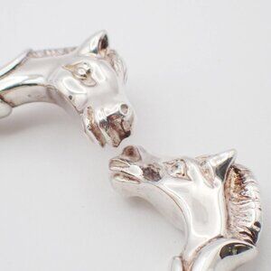 HERMES Logo Cheval Double Horse Head Bangle Bracelet Silver Accessory