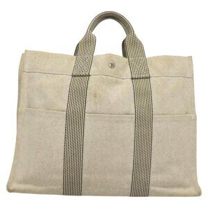 HERMES New Fourre Tout MM Hand Bag Canvas Gray Silver Auth bs27031