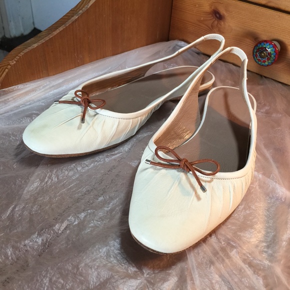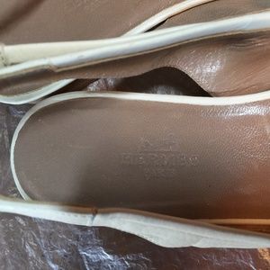 HERMES OFF-WHITE LEATHER MULES FLATS SLINGBACKS 36-6 ITALY ANKLE-STRAP BROWN