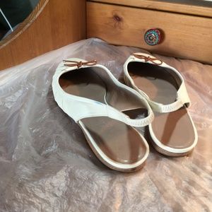 HERMES OFF-WHITE LEATHER WITH BROWN LEATHER BOW Slingback SANDALS / MULES.