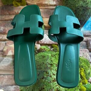 HERMES Oran Vert Electrique Calfskin Leather Sandals SZ 39.5 (9.5 US)
