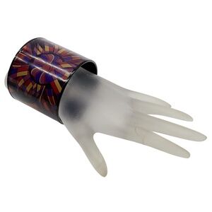 HERMES PURPLE MULTI PRINTED ENAMEL EXTRA WIDE BANGLE BRACELET